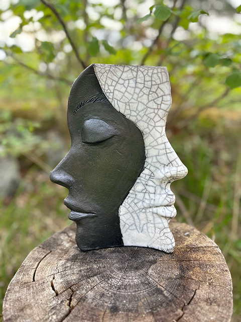 På denna sida hittar du mina senaste skulpturer. De flesta är gjorda i stengodslera men de större skulpturerna är gjorda i fiberbetong. De var alla med på sommarens stora konstutställningen på Rånäs slott, som jag curerade för tredje året i rad. Nu får vi får se hur de klarar vintern på Svartnö.